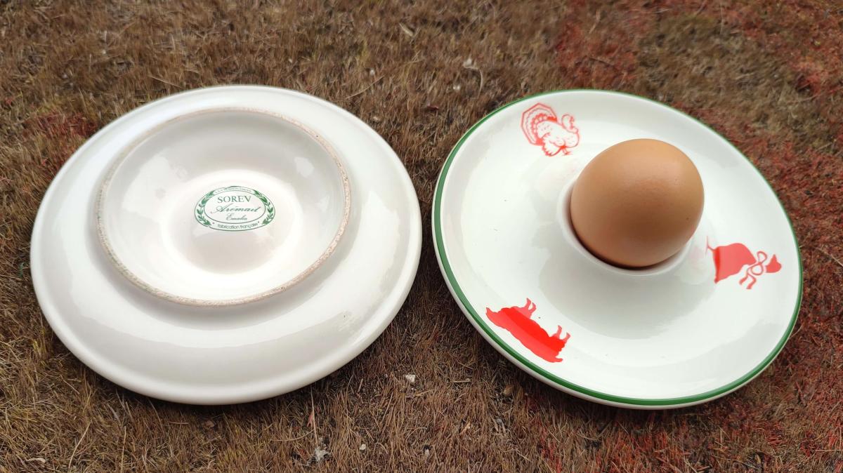 2 coquetiers assiettes animaux de la ferme faïence émaillée qualité