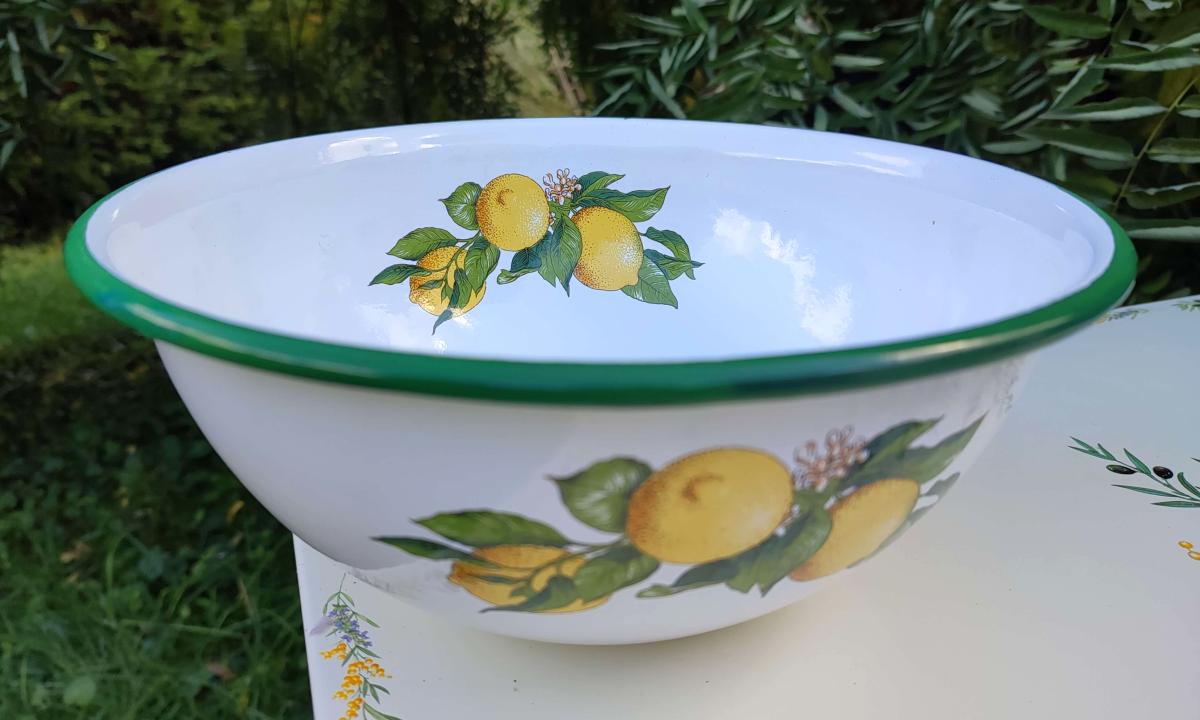 Grand saladier, émail traditionnel à l'ancienne, motif citron