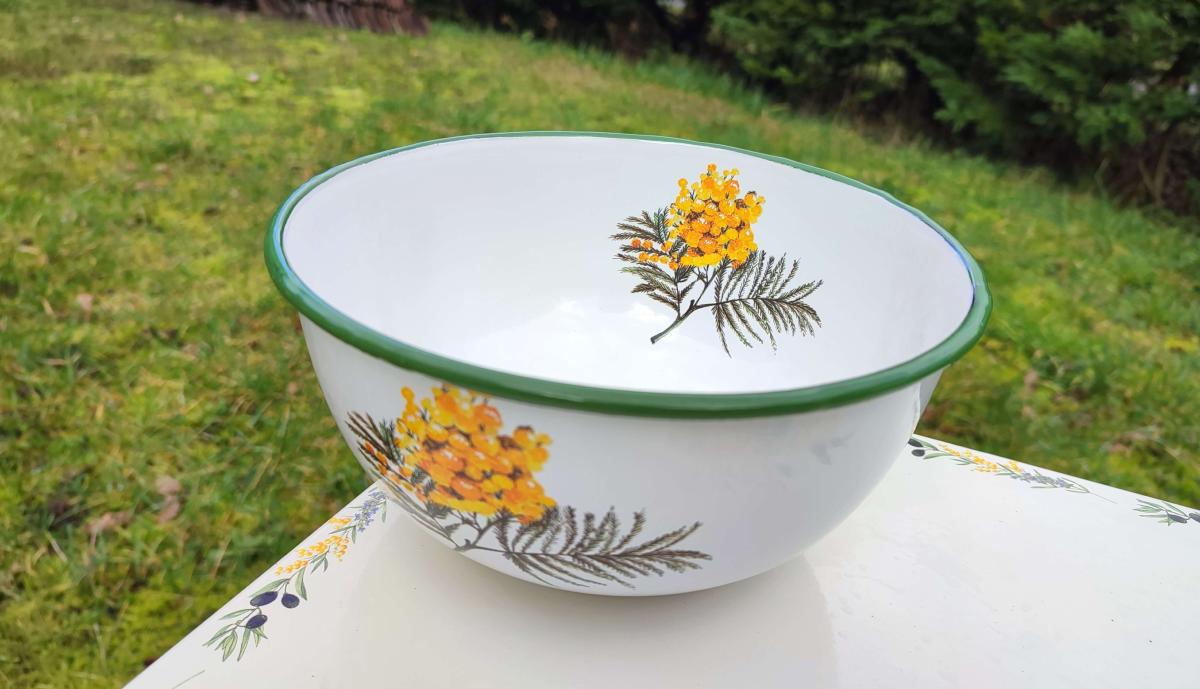 vaisselle émaillée décorée, le saladier émaillé Mimosa déco Provence