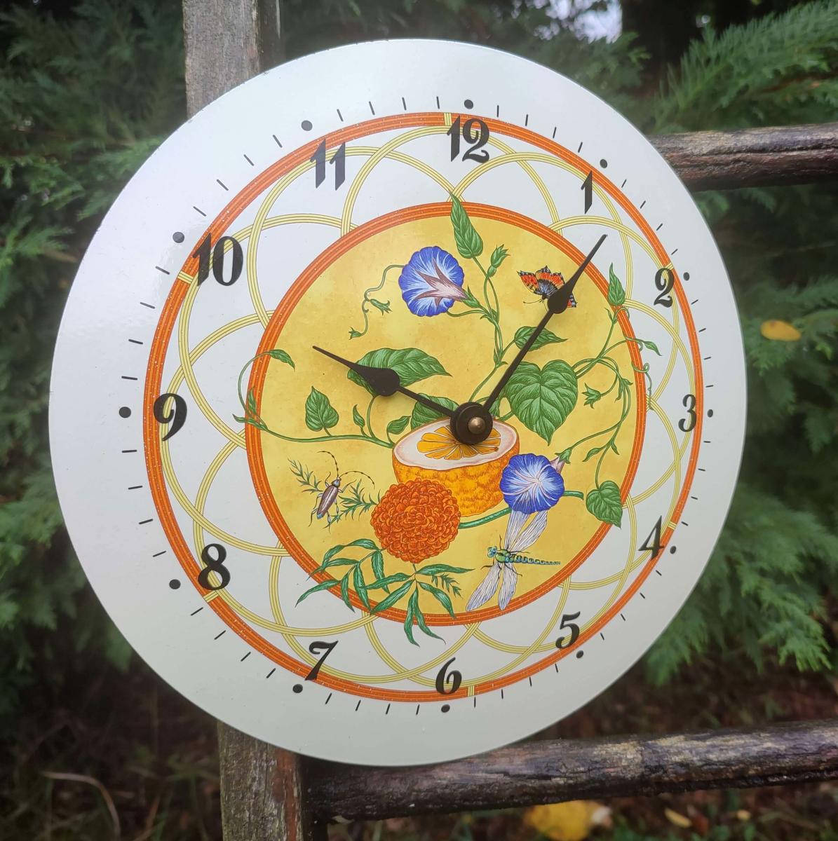 Horloge émaillée ronde bombée fruits et fleurs, mouvement quartz fiable