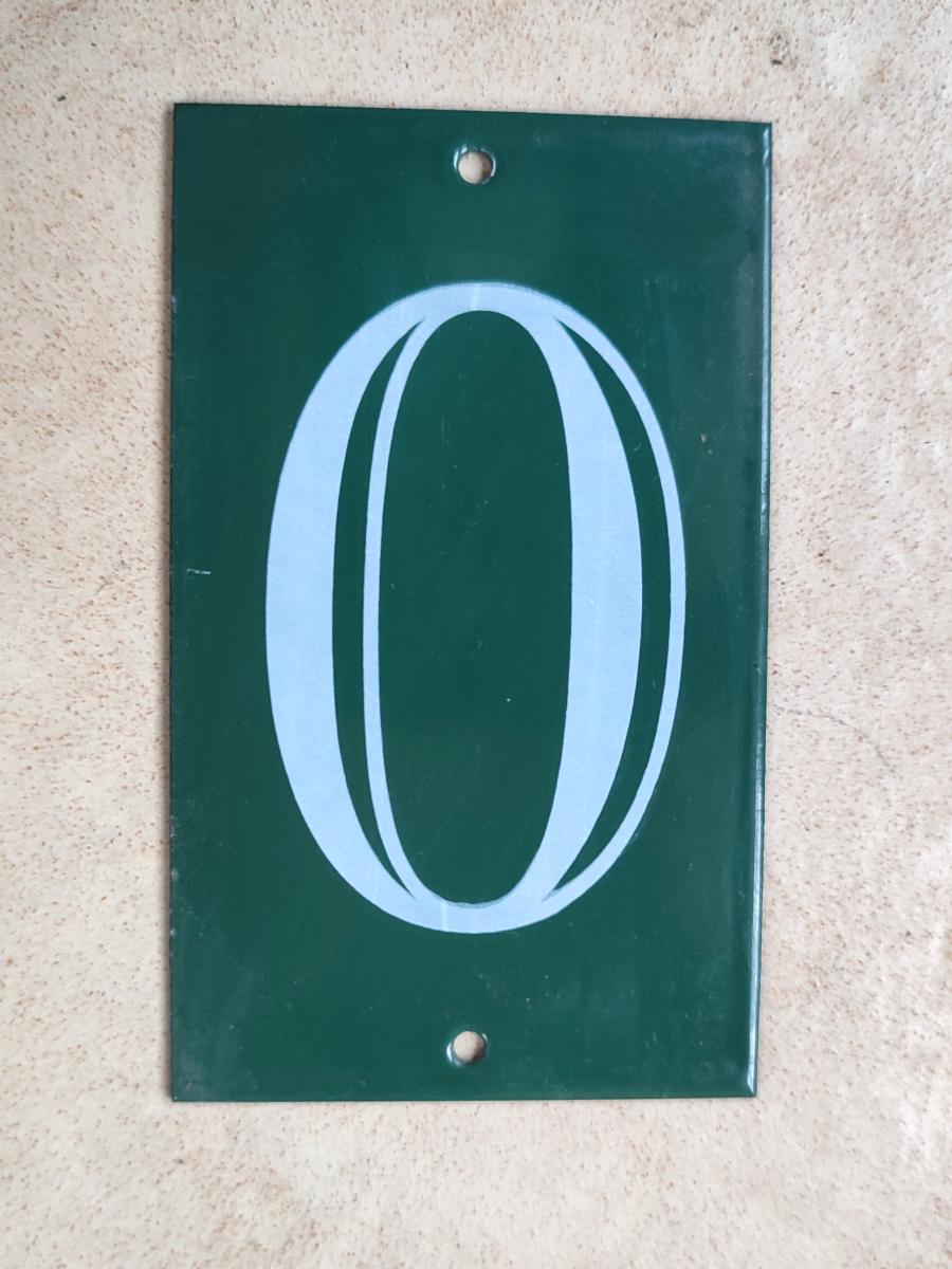 véritable plaque émaillée numéro de maison vert chiffre 0, émail vert, made in France, 10 x 6 cm, 2 trous de fixation.