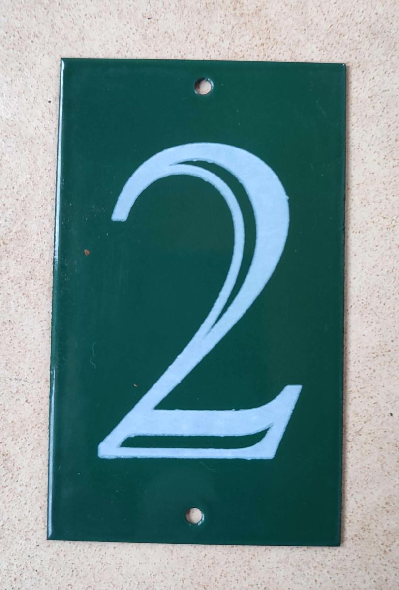 Véritable plaque émaillée numéro de maison bleu chiffre 2 émail vert