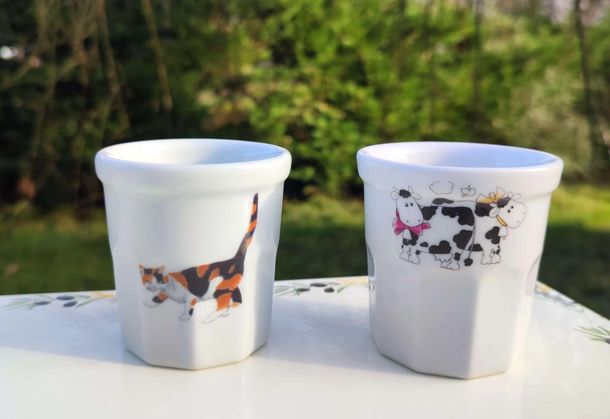 2 pots à confiture porcelaine Pillivuyt vaches et chat Arémail