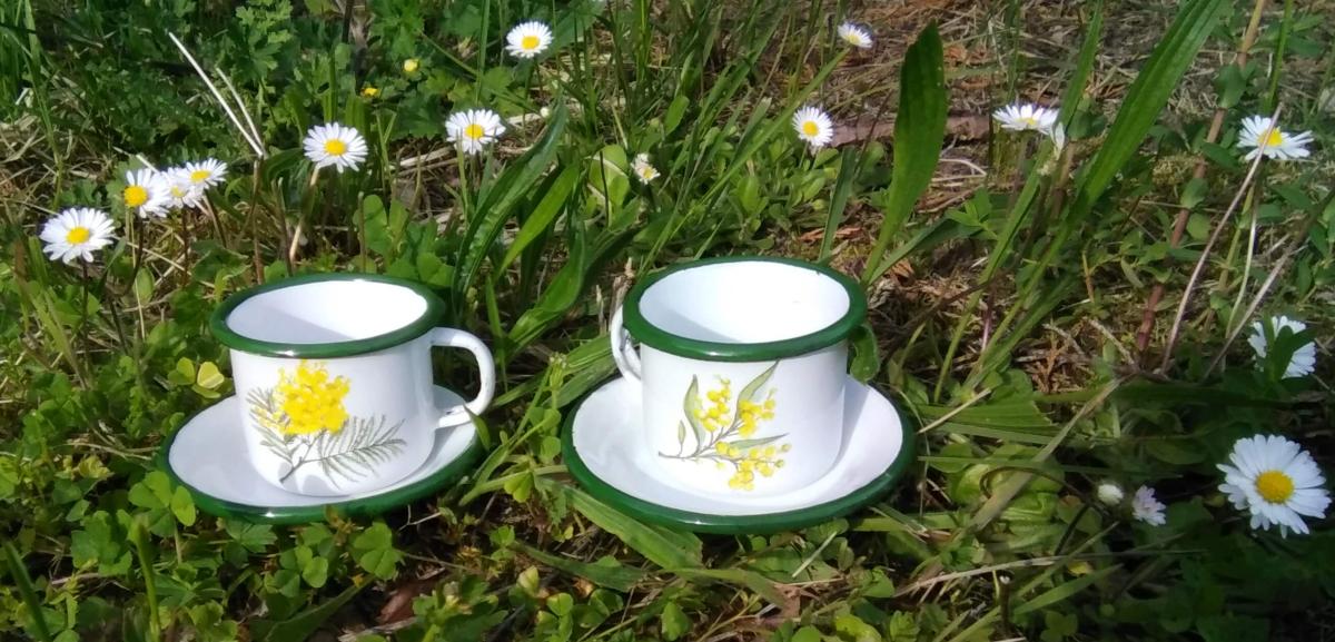 tasses café expresso émaillées décor Mimosa Ar émail Emalia