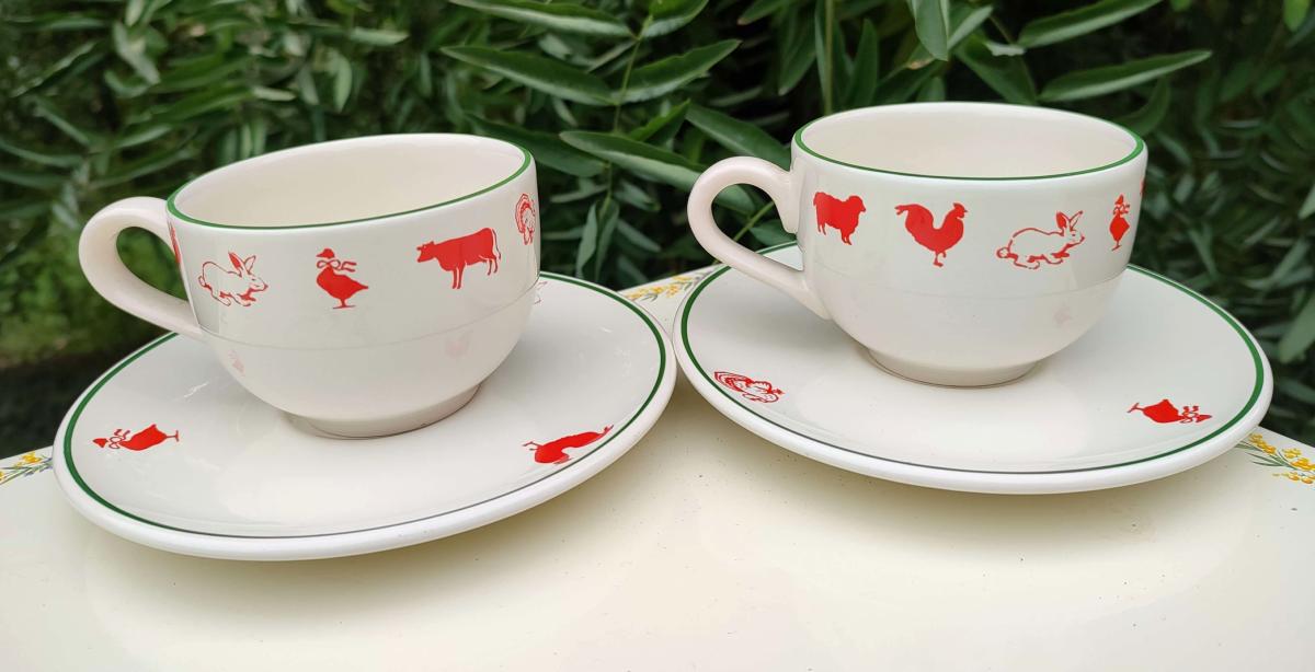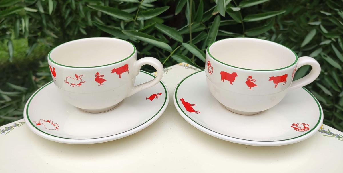 Paire tasse animaux de la ferme faïence émaillée made in France