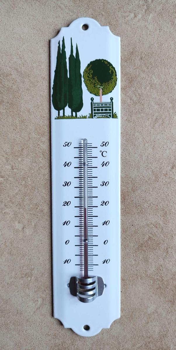 Ce thermomètre émaillé de qualité est destiné au jardin