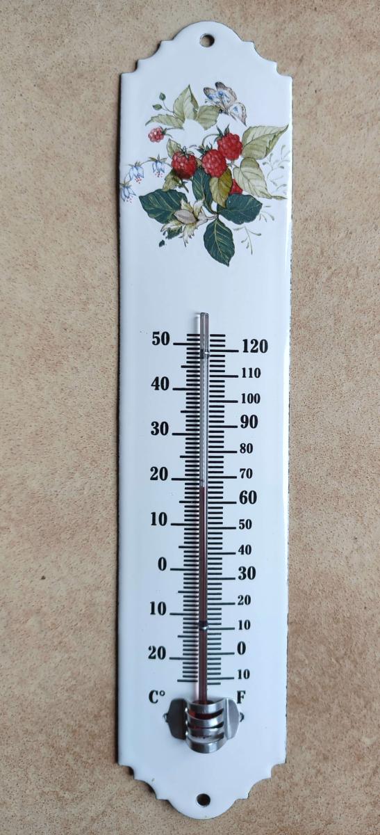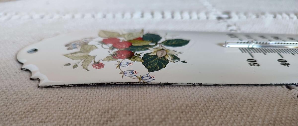 Thermomètre émail véritable framboises bouquet de fruits 30 cm